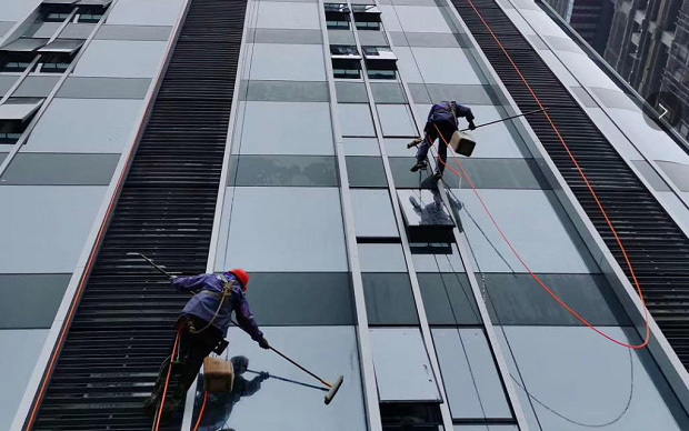 成都龍湖的寫字樓玻璃外墻清洗作業案例
