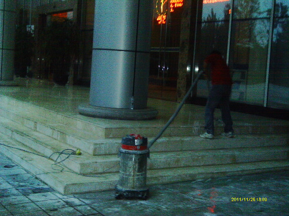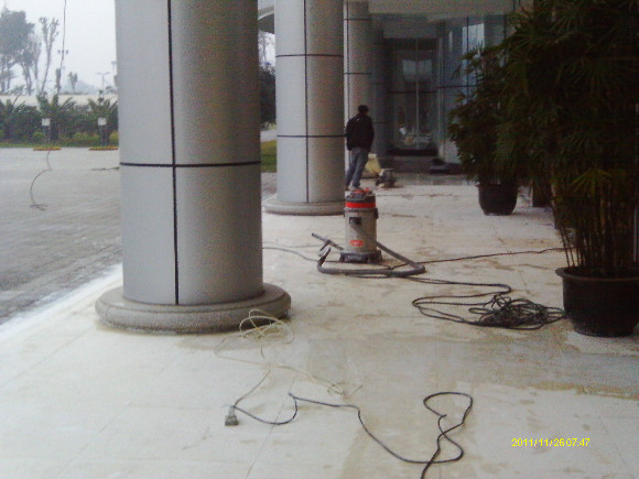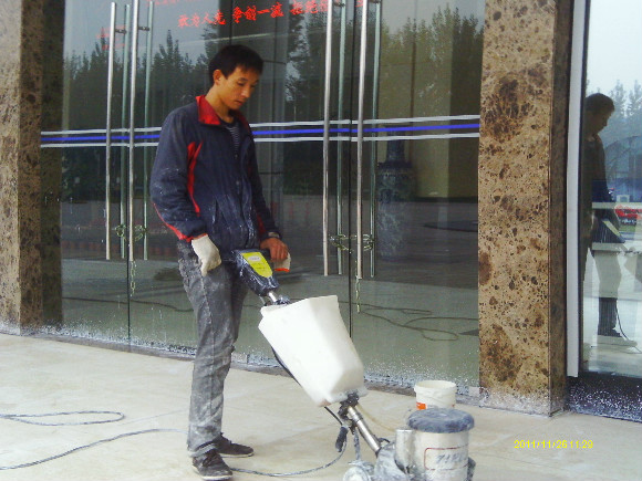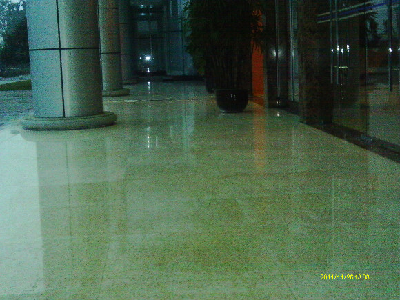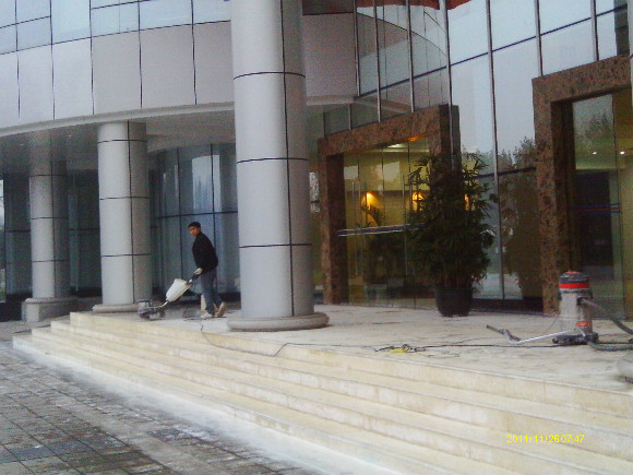到了70年代末,一種可塑性水溶性結(jié)晶聚合物的誕生,亦即是現(xiàn)今常說的水蠟,進(jìn)化了石材護(hù)理的歷史,可以利用這種物質(zhì)對不同材質(zhì)的大理石進(jìn)行護(hù)理。分底蠟(封蠟),面蠟(拋光蠟)及保養(yǎng)蠟(日常修補蠟)是對大理石的塑層進(jìn)行保護(hù)并利用高速拋光來增亮,對石材的保護(hù)起到一定的作用。但是這種水蠟不足之處是蠟層的硬度有限,稍欠保養(yǎng),腳步帶進(jìn)的塵土將很容易把蠟層及石材磨花。同時,遇上雨水季節(jié),因室外雨水塵埃會有一定的雜質(zhì),通過人的腳步帶進(jìn)后,對蠟層的分子組成將造成一定的影響。直觀看到是蠟層變黃及缺光澤,也就是以后常見到的許多客戶為什么須經(jīng)常將腐蝕的蠟層用起蠟水脫去,再重新分工序打上底蠟和面蠟,每次的工作量及耗用的物料較大,這種工藝現(xiàn)市場上很普通,我們稱為石材打蠟第二代。